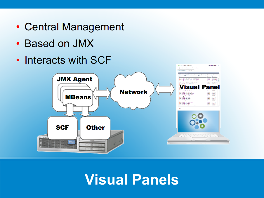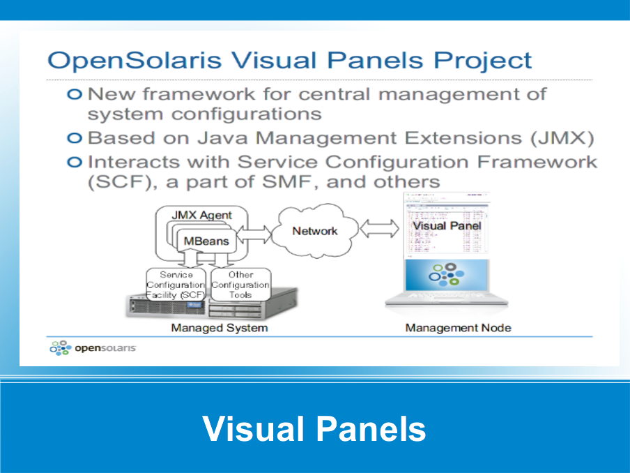 As an example, the image to the right is a badly designed slide: I just took the Visual Panels slide from my OSDevCon 2009 talk (no link, sun.com no longer exists), saved it as a bitmap and included it into a different slide template. A lot of things are wrong here: